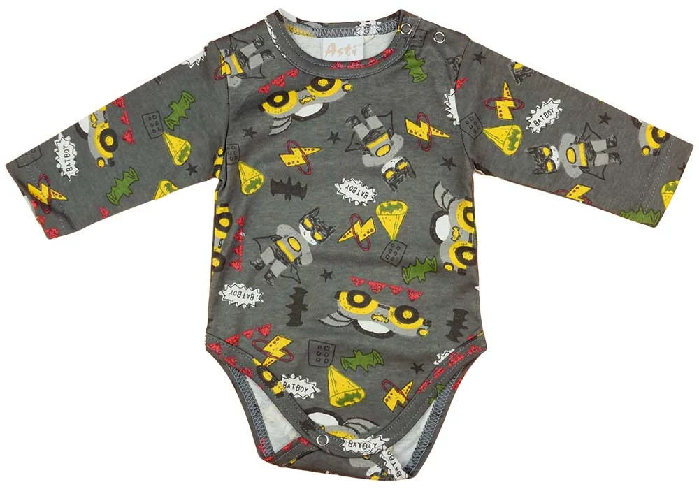 Fedezze fel ezt a hosszú ujjú baba bodyt, ami denevéres mintával van ellátva! Kifejezetten fiú babáknak tervezve, de bármely kis denevér rajongó örömmel viselheti. A szürke alapszín jól kiemeli a mókás mintázatot, amely minden kisfiú fantáziáját megmozgatja. A vállán praktikus patentok segítik a könnyed öltözködést, így a baba és a szülők is kényelmesen kezdhetik a napot. A magyarországi gyártás garantálja a kiváló minőséget: az I. osztályú 100% pamutszövet gondoskodik a babák érzékeny bőrének védelméről. A termék nem tartalmaz nikkelt, így az erre érzékeny babák sem lesznek allergiás reakciótól tartani. Hadd legyen a kisfiúd napja vidám és játékos ebben a denevéres mintás bodyban!