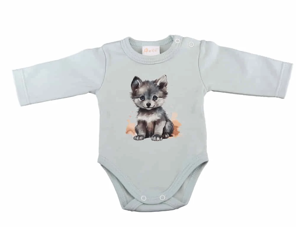 Kiemelkedően praktikus és stílusos csemetéknek - ez a hosszú ujjú, világos mintás baba body igazi alapdarab lesz a kisbabák ruhatárában. A body 100% pamutból készült, amely bababarát és minőségi anyag, így a kicsik bőre számára is tökéletesen megfelelő. Az anyag szín- és formatartó, így a gyakori mosás sem jelent gondot. A vállán található patentok megkönnyítik a baba öltöztetését, míg a lába közötti patentos megoldás a gyors peluscserét teszi lehetővé. A termék magyar származású, I. osztályú minőségű, és nikkelmentes patenttal készül - így az arra érzékeny babák is bátran viselhetik. A világos menta színű bodyt cuki farkas minta díszíti, ami egyedi és játékos megjelenést kölcsönöz neki. Hagyd, hogy babád stílusa már a legkorábbi életévekben is megmutatkozzon!