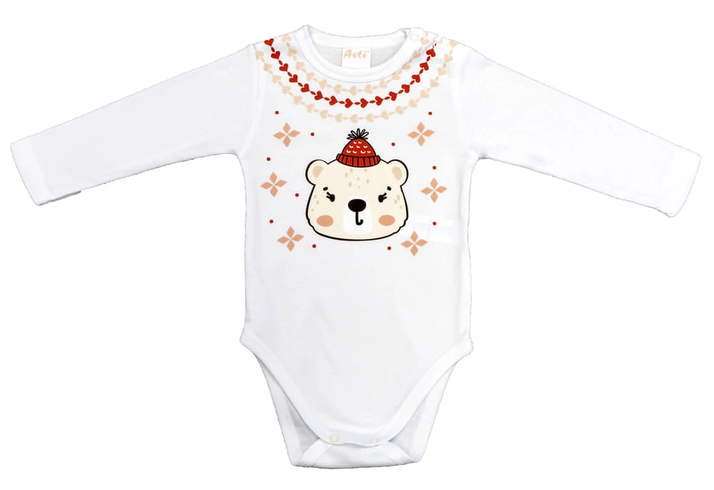 Hosszú ujjú baba body karácsonyi jegesmedve mintával