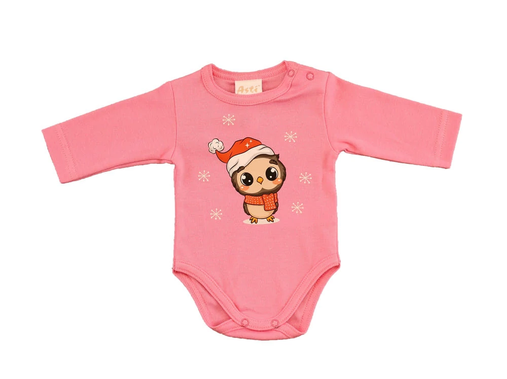 Hosszú ujjú baba body karácsonyi mintával Kisbabák ruhatárának praktikus alapdarabja a karácsonyi mintával díszített, hosszú ujjú baba body, ami tökéletes választás a hideg téli napokra Ez a cuki télapósapis bagoly mintával nyomott baba body minőségi, bababarát 100% pamut anyagból készült, szín- és formatartó, ami jól bírja a gyakori mosást is. Vállán patentos, így megkönnyíti a baba öltöztetését. A lába közötti patentos megoldás, pedig a gyors peluscserét teszi lehetővé. Minőségi magyar termék Anyaga: 100% pamut Minőség: I. osztály A termék nikkelmentes patenttal készül. A patent nem tartalmaz nikkelt, ezért nem vált ki allergiás reakciót az erre érzékeny babáknál