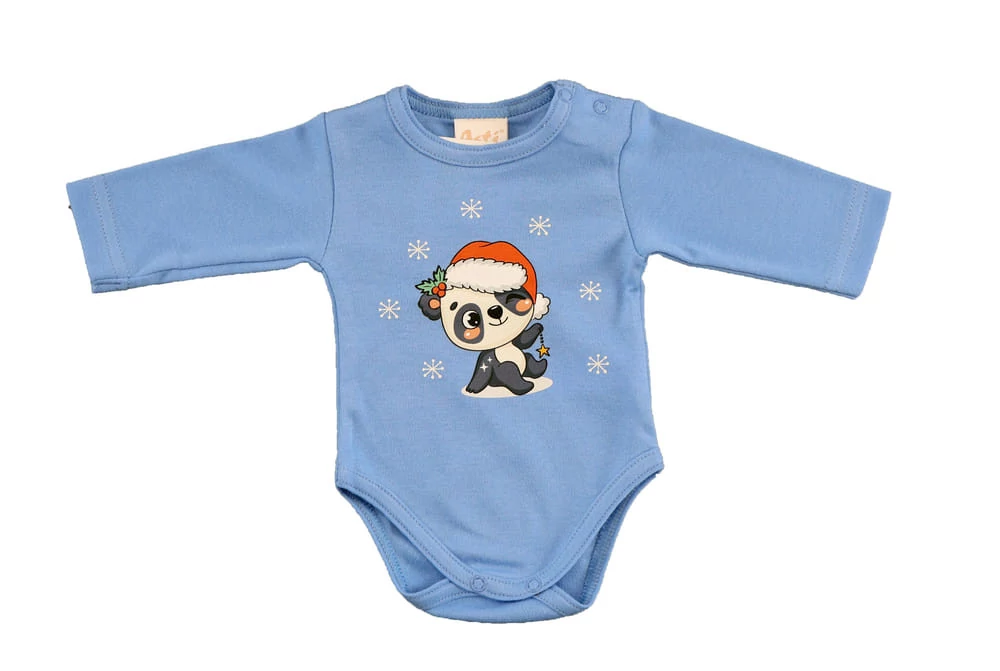 Hosszú ujjú baba body karácsonyi mintával Kisbabák ruhatárának praktikus alapdarabja a karácsonyi mintával díszített, hosszú ujjú baba body, ami tökéletes választás a hideg téli napokra Ez a cuki télapósapis panda mintával nyomott baba body minőségi, bababarát 100% pamut anyagból készült, szín- és formatartó, ami jól bírja a gyakori mosást is. Vállán patentos, így megkönnyíti a baba öltöztetését. A lába közötti patentos megoldás, pedig a gyors peluscserét teszi lehetővé. Minőségi magyar termék Anyaga: 100% pamut Minőség: I. osztály A termék nikkelmentes patenttal készül. A patent nem tartalmaz nikkelt, ezért nem vált ki allergiás reakciót az erre érzékeny babáknál