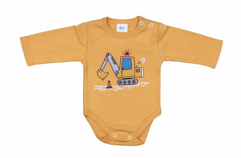 Hosszú ujjú baba body Macis mintával Kisbabák ruhatárának praktikus alapdarabja a body. Ez a vagány markoló mintával nyomott baba body minőségi, bababarát 100% pamut anyagból készült, szín- és formatartó anyagból, ami jól bírja a gyakori mosást is. Vállán patentos, így megkönnyíti a baba öltöztetését. A lába közötti patentos megoldás, pedig a gyors peluscserét teszi lehetővé. Minőségi magyar termék Anyaga: 100% pamut Minőség: I. osztály A termék nikkelmentes patenttal készül. A patent nem tartalmaz nikkelt, ezért nem vált ki allergiás reakciót az erre érzékeny babáknál