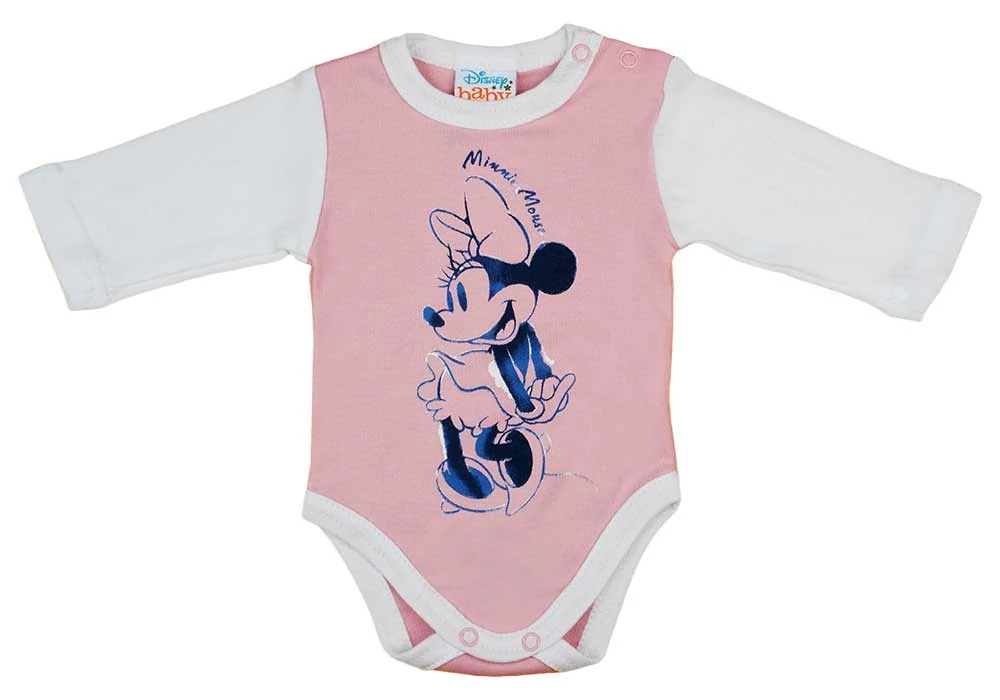 Bűbájosan aranyos és kényelmes rózsaszín baba body, amelyen a mindenki által kedvelt Minnie egér vidám képe díszeleg. A hosszú ujjú kialakításnak köszönhetően a kicsiket melegen tartja a hűvösebb napokon is. A vállon található patentos kialakítás megkönnyíti a babák öltöztetését. Az eredeti Disney termék garantálja a minőséget és a tartósságot. A 100% pamut anyag, melyből készült, rendkívül puha és bőrbarát, így nem okoz irritációt a babák érzékeny bőrén. Az Andrea Kft. által Magyarországon készített minőségi termék, mely az I. osztályba tartozik, nikkelmentes patenttal készül, így az erre érzékeny babáknál sem vált ki allergiás reakciót. Tökéletes választás a minőséget és a stílust egyaránt kedvelő szülők számára.