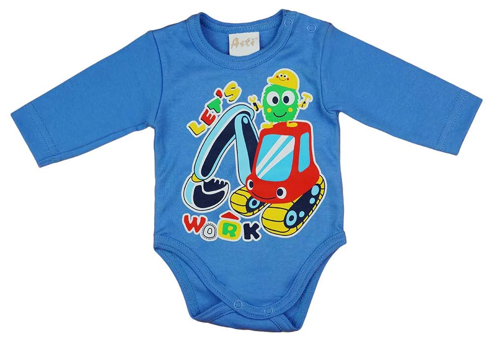 Hosszú ujjú baba body munkagépes mintával