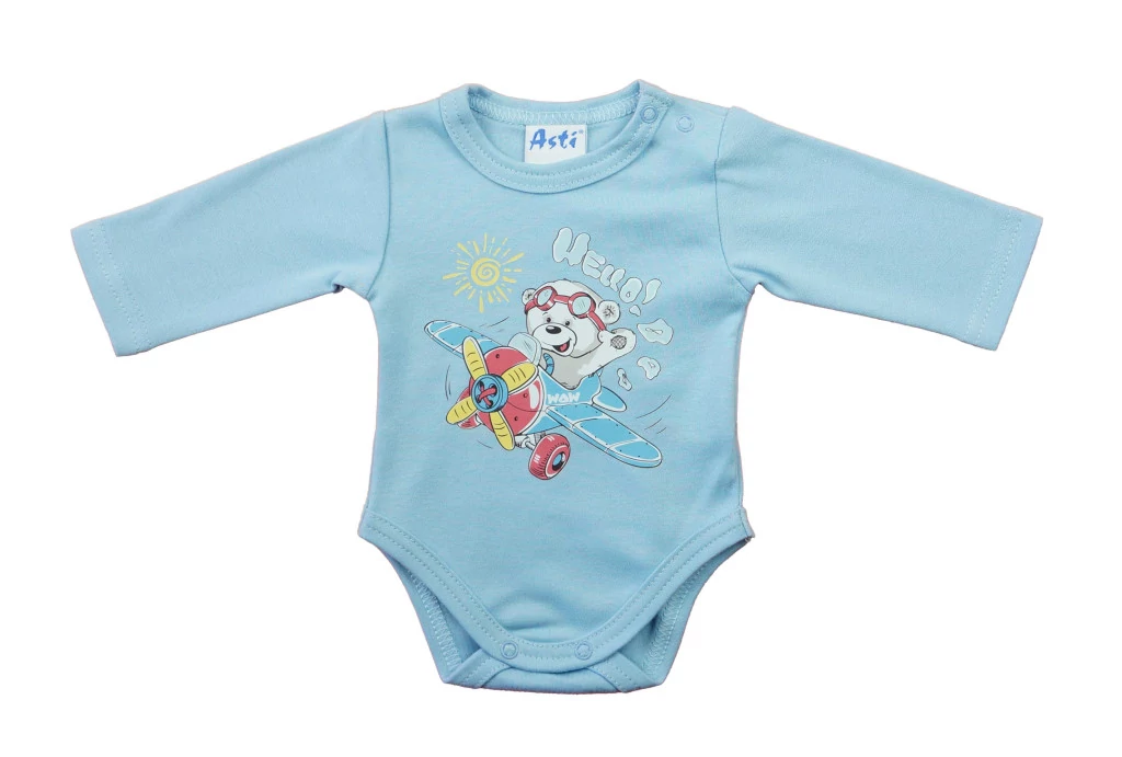 Hosszú ujjú baba body - Repülős maci mintával