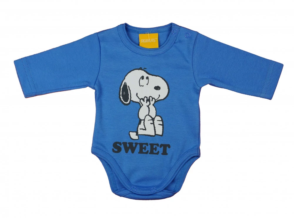 Hadd öltöztesse a kisbabáját ezzel a cuki, Snoopy mintával díszített hosszú ujjú bababodyval, amely középkék színben pompázik. A body a kisbabák ruhatárának praktikus alapdarabja, melynek viselése közben a baba kényelméről a minőségi, bababarát 100% pamut anyag gondoskodik. Az anyag szín- és formatartó, így a gyakori mosások után is megőrzi eredeti állapotát. A vállán található patentos kialakítás megkönnyíti a baba öltöztetését, míg a lába közötti patentos megoldás a gyors peluscserét teszi lehetővé. Mindemellett a termék nikkelmentes patenttal készül, így az erre érzékeny babáknál sem vált ki allergiás reakciót. Válaszd ezt a minőségi magyar terméket, ami az I. osztály minőség jelzést is büszkén viseli!