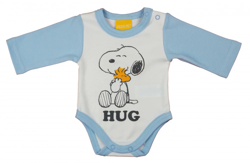 Fedezze fel ezt a bájos Snoopy mintás bababodyt, ami minden kisbabának jól áll. A fehér és világoskék színek között választhat. A minőségi, 100% pamut anyag biztosítja, hogy babája mindig kényelmesen és stílusosan viselhesse. Az anyaga szín- és formatartó, így a gyakori mosás sem jelent problémát. A vállán található patentok segítségével könnyedén felvehető és levehető a body, míg a lába közötti patentok a gyors peluscserét teszik egyszerűvé. Nikkelmentes patentokkal készült, így az allergiára hajlamos babák is nyugodtan viselhetik. Minőségi magyar termék, ami ideális választás a praktikus és stílusos babaruhatár számára.