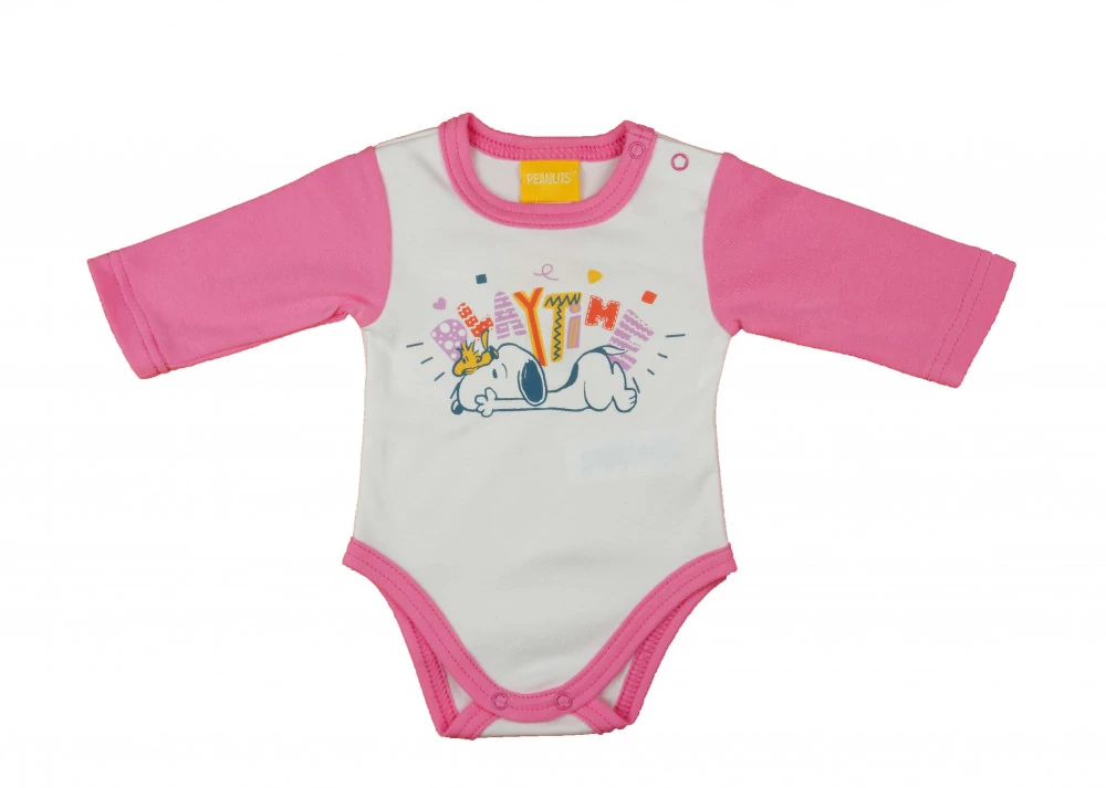 Legyen bébi gardróbod alapdarabja ez a cukin Snoopy mintás, hosszú ujjú baba body! A fehér és világos pink színek elegáns kontrasztot alkotnak, míg a Snoopy minta hozzáadja az aranyos faktort. Készült minőségi, 100% pamut anyagból, amely bababarát és kiválóan bírja a gyakori mosást. A vállán található patentok megkönnyítik a babád öltöztetését, míg a lába közötti patent segít a gyors peluscserében. Egy igazán minőségi magyar termék, amely az I. osztályú minősítést kapta. A termékben használt patent nikkelmentes, így az arra érzékeny babák sem fognak allergiás reakciót tapasztalni. Az anyag szín- és formatartó, így a body hosszú ideig megőrzi eredeti szépségét. Ez a body nem csak praktikus, de szuper cuki is – tökéletes választás a kisbabád számára!