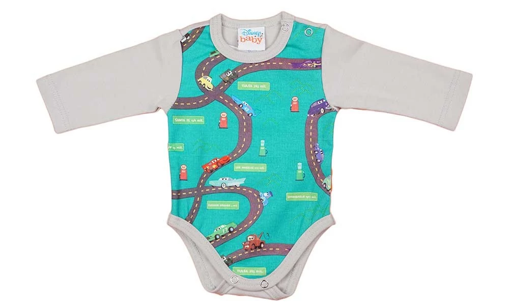 Az eredeti Disney Verdák mintával díszített hosszú ujjú baba body egyszerűen elbűvölő választás a kis járműrajongóknak. A szürke színű, vállon patentos kialakítású ruhadarab minőségi magyar termék, melyet az Andrea Kft. készített, garantálva a kiváló minőséget és tartósságot. A body 100% pamutból készült, ami puha, kényelmes viseletet biztosít a babának, miközben bőrbarát is, mivel a termékben használt patent nikkelmentes, így nem vált ki allergiás reakciót az erre érzékeny babáknál. Ajándékozzon a kicsinek egy igazán különleges, mesés ruhadarabot, melyben minden nap új kalandok várnak rá!