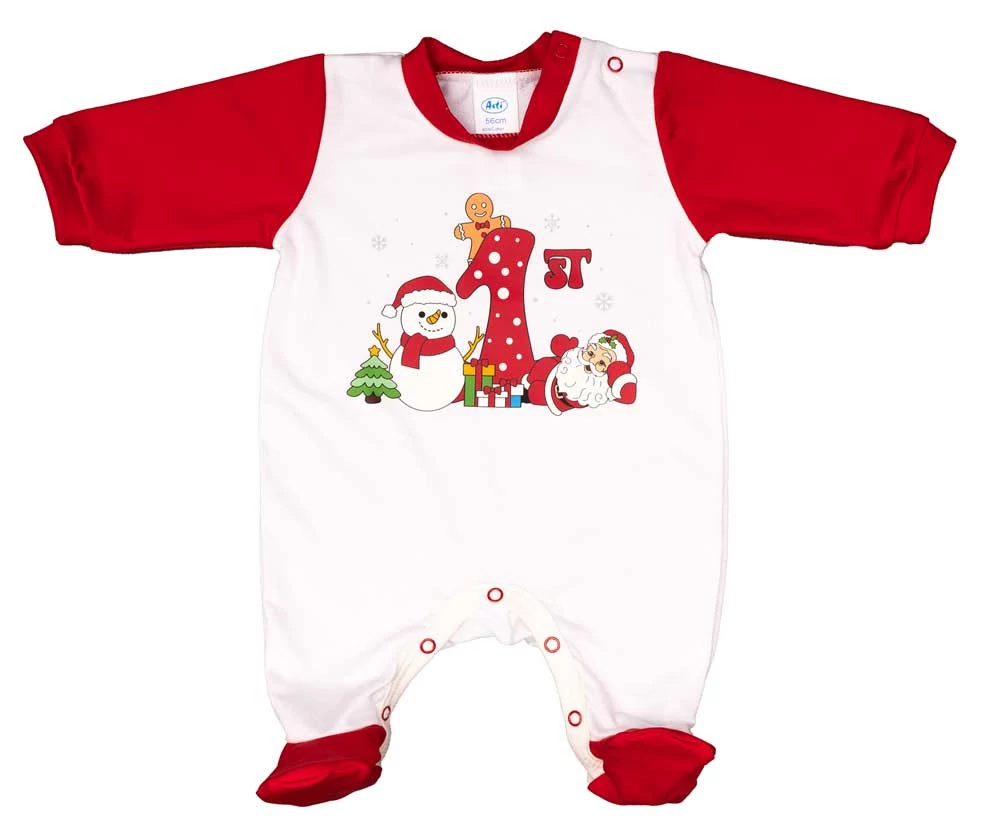 Hosszú ujjú baba rugdalozó karácsonyi mintával
