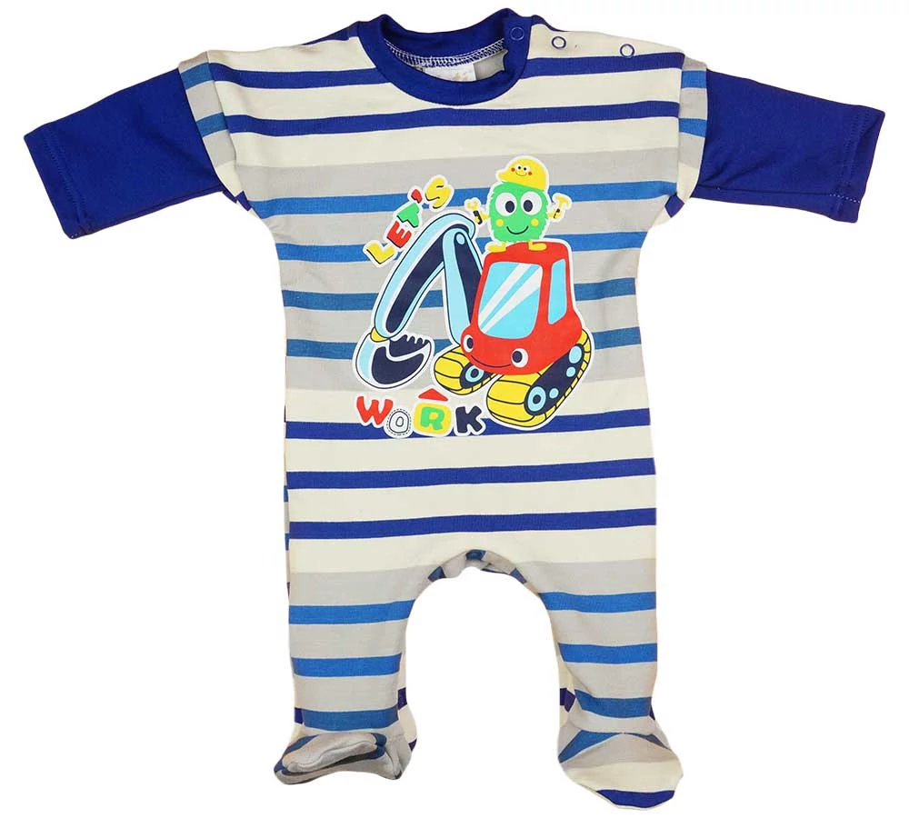 Hosszú ujjú, belül bolyhos baba rugdalózó munkagépes mintával