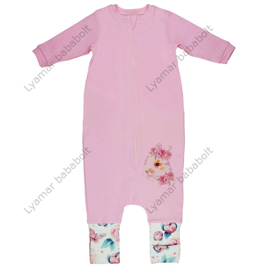 Búcsúzzunk el a lehulló takaróktól és az éjszakai fázásoktól! Ezzel a hosszú ujjú, elöl cipzáras tipegő hálózsákkal minden éjszaka nyugalmas lesz kisbabánk számára. A cipzár használata egyszerű és gyors, ráadásul cipzárvédővel is ellátott, hogy a babánk bőre mindig védett legyen. A hálózsák lábainál aranyos nyuszis minta található, a lábszárain pedig gyönyörű rózsás mintázatot rejt, ami mindkét apró lábikót külön-külön melegben tartja. Éjszakára lehajthatók a lábszárai, így nem kell tartanunk attól, hogy a gyermekünk megfázik. A reggelekben pedig könnyedén kibújtathatja a lábacskáit. A hálózsák 3 méretben elérhető, így biztosan megtalálja a tökéleteset csemetéje számára. A 100% bababarát pamutból készült hálózsák könnyen tisztítható és mosható, színe és formája hosszú távon is megmarad. Minőségi magyar termék, ami a kicsik és a szülők szívéhez egyaránt közel kerül. Anyaga: 100% pamut. Minőség: I. osztály.