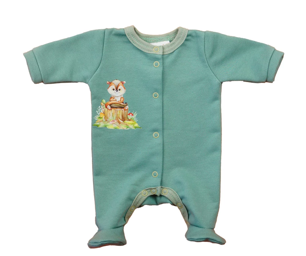 Hosszú ujjú elöl patentos rugdalózó – Állatos mintával Egy igazán bájos darab, amelyben minden kisbaba kényelmesen mozoghat a mindennapokban. Ez a belül bolyhos pamut rugdalózó nemcsak puha tapintásával, hanem praktikus kialakításával is leveszi a szülők válláról a terhet. Az elöl végigfutó patentoknak köszönhetően a peluscserék és az öltöztetés gyorsan és egyszerűen megoldható, különösen az újszülöttek és a pár hónapos babák esetében. Előnyök: Anyaga: 65% pamut - 35% Poliester – puha, meleg és könnyen mosható Nikkelmentes patentok – biztonságos az érzékeny bőrű babáknak is Minőség: I. osztályú, magyar termék Praktikus és tartós – sok mosás után is megőrzi formáját Miért ajánljuk? Ez a rugdalózó nem csupán kényelmes öltözet, hanem szeretetteljes választás is, amelyben a babák vidáman fedezhetik fel a világot. Egy aranyos és praktikus ruhadarab, amit minden szülő jó szívvel adhat gyermekének.