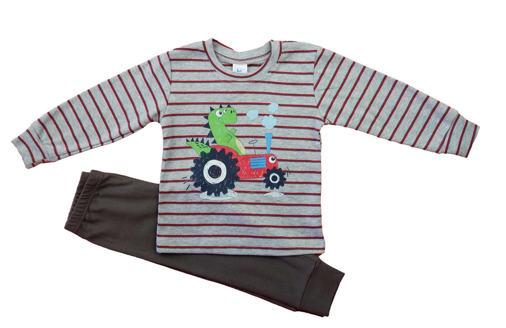 Hosszú ujjú fiú pizsama – Kalandos álmok, teljes kényelemben Varázsold különlegessé az esti lefekvést ezzel a vidám mintájú, kényelmes pizsamával! A két részes szett 100% pamutból készült, amely légáteresztő, bőrbarát és finoman puha tapintású. A hosszú ujjú felsőhöz egy gumis derekú nadrág tartozik, amely biztosítja a szabad mozgást és a könnyű felvételt – ideális játékhoz és pihentető alváshoz is. A strapabíró, I. osztályú minőségnek köszönhetően a pizsama hosszú ideig megőrzi formáját és színeit, így a szülők és a gyerekek egyaránt imádni fogják. Főbb jellemzők: Anyag: 100% pamut – természetes, bőrbarát és légáteresztő Két részes szett: hosszú ujjú felső + hosszú nadrág Gumis derekú nadrág a kényelmes illeszkedésért I. osztályú, magyar gyártású termék Vidám, gyerekbarát design Miért ajánljuk? ✔ Puhaság és kényelem egész éjjel ✔ Strapabíró, minőségi kivitel ✔ Bájos, kalandokra hívó minták
