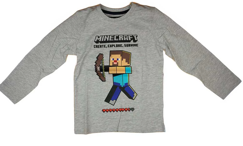 A kis Minecraft rajongóknak szánt hosszú ujjú pólóval minden nap egy kaland lesz! A szürke alapszínű, 100% pamutból készült póló kiváló minőségű és kényelmes viseletet biztosít a játékhoz és a mindennapi tevékenységekhez. A Minecraft minta pedig garantáltan mosolyt csal a kisfiúk arcára. Andrea Kft. gondoskodik a termék hibátlan minőségéről és a hazai forgalmazásról. Kiváló választás lehet iskolába, játszóházba vagy csak otthoni viselésre is.