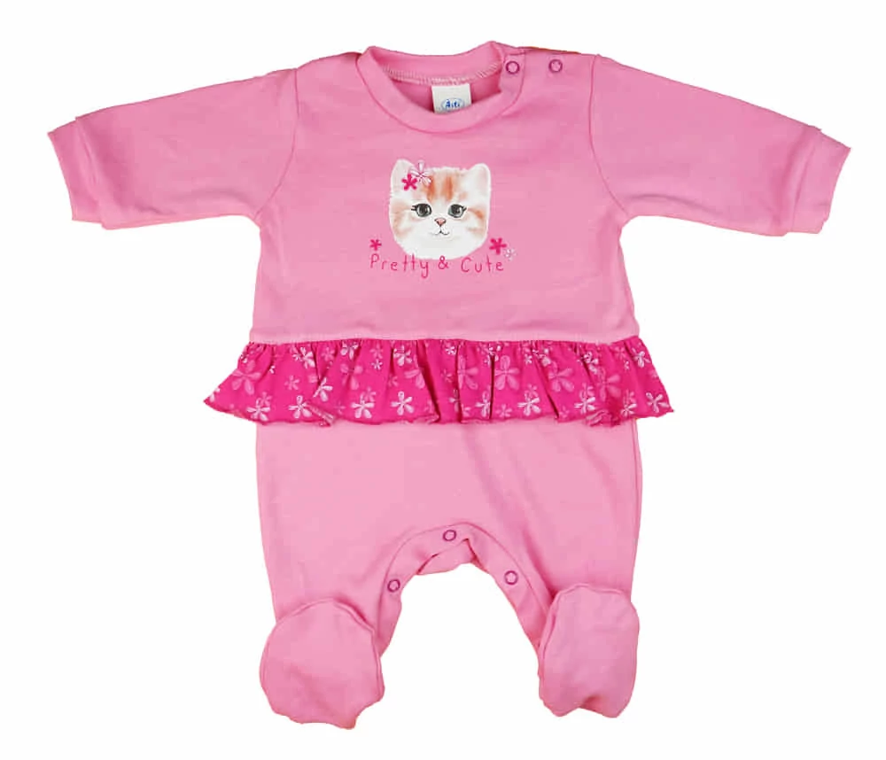 Hosszú ujjú fodros baba rugdalózó cica mintával