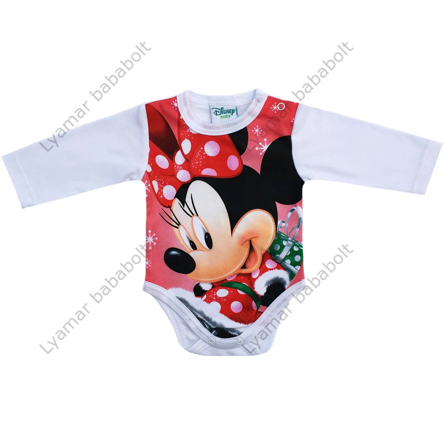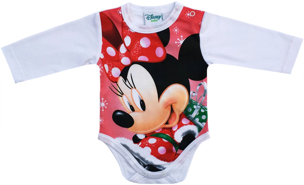 Disney Minnie Mouse mintával nyomott, karácsonyi hosszú ujjú body. Magyar termék.