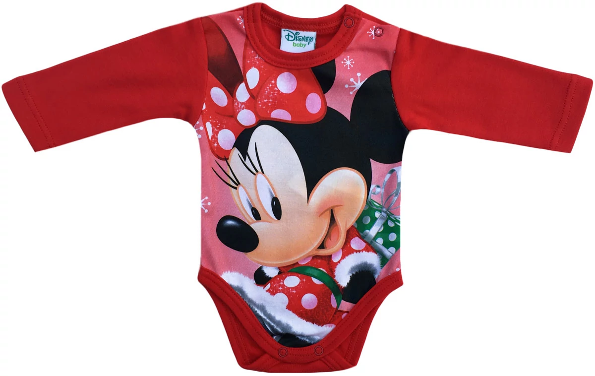 Disney Minnie Mouse mintával nyomott, karácsonyi hosszú ujjú body. Magyar termék.