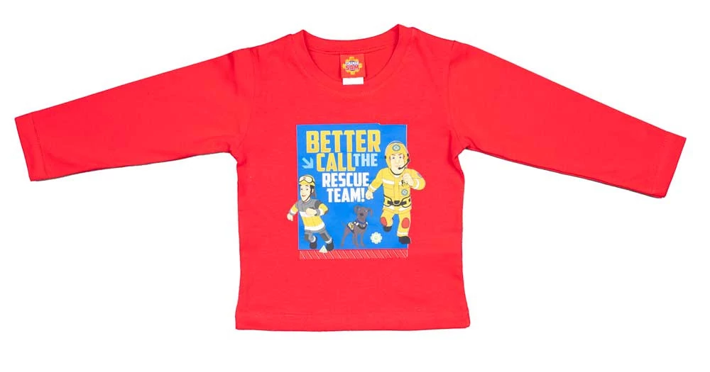 Hosszú ujjú kisfiú póló Sam a tűzoltó mintával