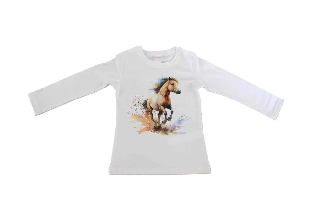 A kislányok imádni fogják ezt a hosszú ujjú pólót, melyen cuki lovas minta díszeleg. Az egyszerű, de stílusos design tökéletes választás mindennapokra, legyen szó óvodáról, játszótérről vagy családi programokról. A póló nyers színű alapja hozzájárul a természetes, játékos megjelenéshez, míg a vidám minta még izgalmasabbá teszi a viseletet. A póló könnyű, kényelmes viseletet biztosít, ami egy farmernadrággal kombinálva igazán csibészes megjelenést kölcsönöz a kislányoknak. A 95% pamut és 5% elasztán anyagösszetétel garantálja a termék puhaságát, rugalmasságát és ellenállóságát. Az anyag minőségi, könnyen kezelhető, jól mosható, szín- és formatartó, így hosszú ideig megőrzi eredeti állapotát. Magyarországon készült, első osztályú minőségű termék, amelyben a kislányok egész nap kényelmesen és boldogan játszhatnak. A pólóval nem csak a stílusos megjelenést, de a magas minőségű, hazai termelés értékeit is továbbadhatjuk a jövő generációjának.