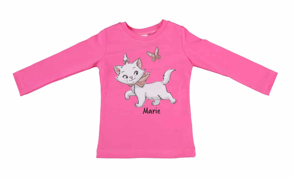 Hosszú ujjú kislány póló Marie cica mintával Eredeti Disney termék Hosszú ujjú kislány póló enyhén rugalmas pamut anyagból. Praktikus alapdarabja kislányunk ruhatárának, amit nadrággal, szoknyával is viselhet. Az elején aranyos Marie cica mintával nyomva, ami garantálja, hogy kislányunk is szeretni fogja. Minőségi, könnyen kezelhető, szín- és formatartó anyagból készült. Minőségi magyar termék Anyaga: 90% pamut, 10% elasztán Minőség: I. osztály