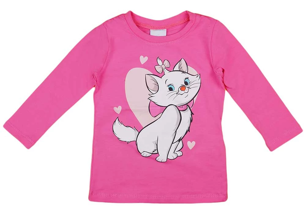 Egy igazi kislányos alapdarab, amely minden kislány ruhatárában nélkülözhetetlen. Ez a hosszú ujjú póló világos pink színben pompázik, a népszerű Disney karakter, a bájos Marie cica mintájával díszítve. Az enyhén rugalmas pamut anyag biztosítja a kényelmet és a szabad mozgást, legyen szó akár játszóról, akár családi összejövetelről. Kombinálható nadrággal, szoknyával is, így remek választás bármilyen alkalomra. A minőségi, könnyen kezelhető, szín- és formatartó anyag garantálja, hogy a póló hosszú ideig megőrzi szépségét. Anyaga: 90% pamut, 10% elasztán - így biztosítva a rugalmasságot és a tartósságot. Eredeti Disney termék, minőség: I. osztály. Minőségi magyar termék, amelyet kislányunk biztosan imádni fog.