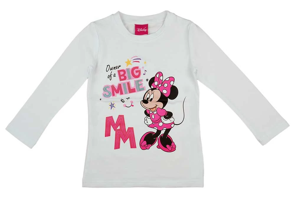 A Minnie egér mintával díszített hosszú ujjú kislány póló a Disney eredeti terméke, melyet Magyarországon készítenek. Az enyhén rugalmas pamut anyagból készült póló a kislányok ruhatárának praktikus alapdarabja, amit nadrággal vagy szoknyával egyaránt viselhetnek. Az elején található vidám Minnie egér minta garantálja, hogy a kicsik imádni fogják ezt a darabot, míg a minőségi, könnyen kezelhető, szín- és formatartó anyag hosszútávon is megőrzi a póló csinos megjelenését. Minőség: I. osztály, 100% pamut.