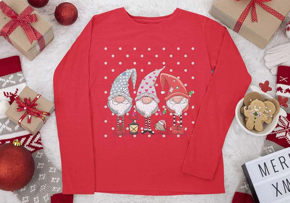 Hosszú ujjú lány póló karácsonyi manós mintával