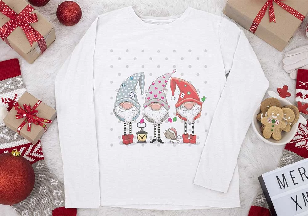 Hosszú ujjú lány póló karácsonyi manós mintával