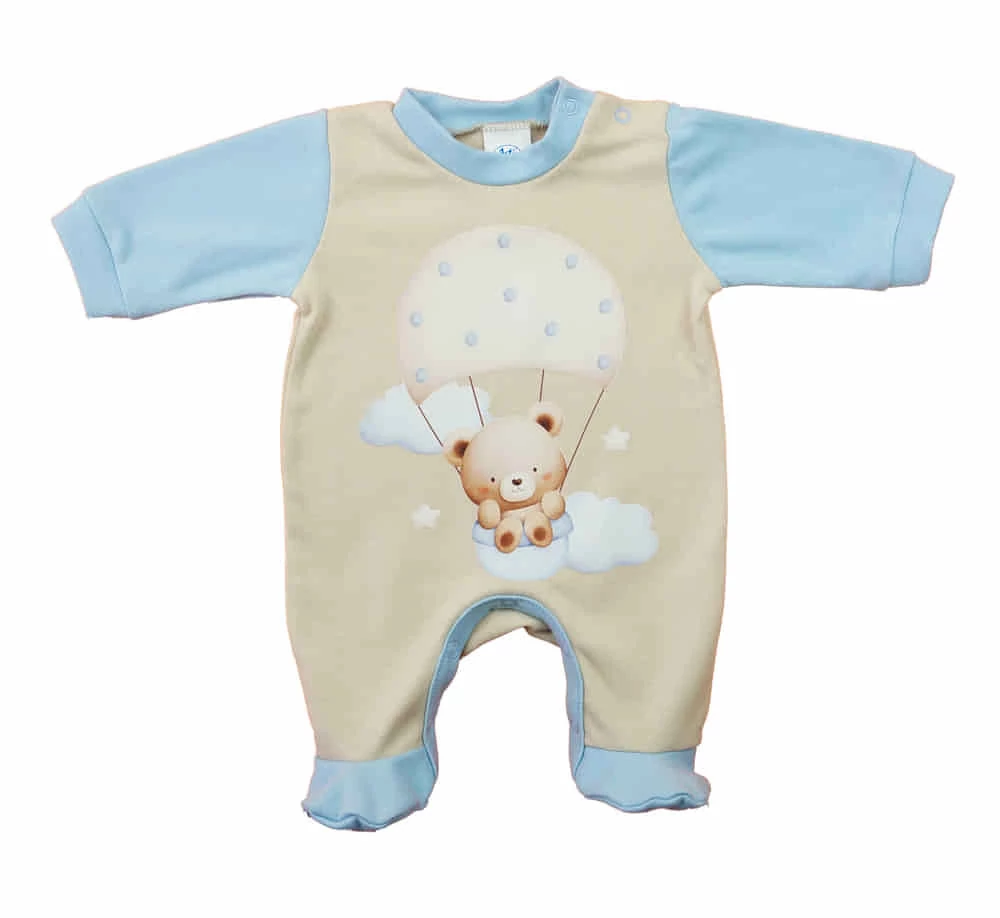 A kényelem és a stílus tökéletes kombinációját kínálja ez kisfiú rugdalózó, amelyet maci mintával díszítettünk. vékony pamut, bababarát anyagból készült, kényelmes viseletet biztosítva egész napra. Vállán patentos, így megkönnyíti a picik öltöztetését. A lába közötti patentos megoldás a peluscserénél nagy segítség. Jól mosható, szín- és formatartó anyagból készült.