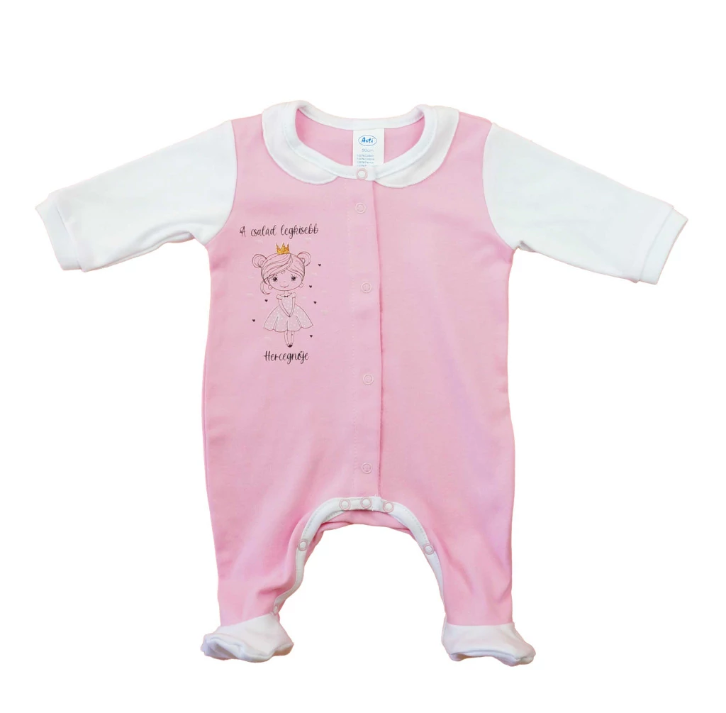 Hosszú ujjú vékony pamut rugdalózó A család legkisebb Hercegnője mintával