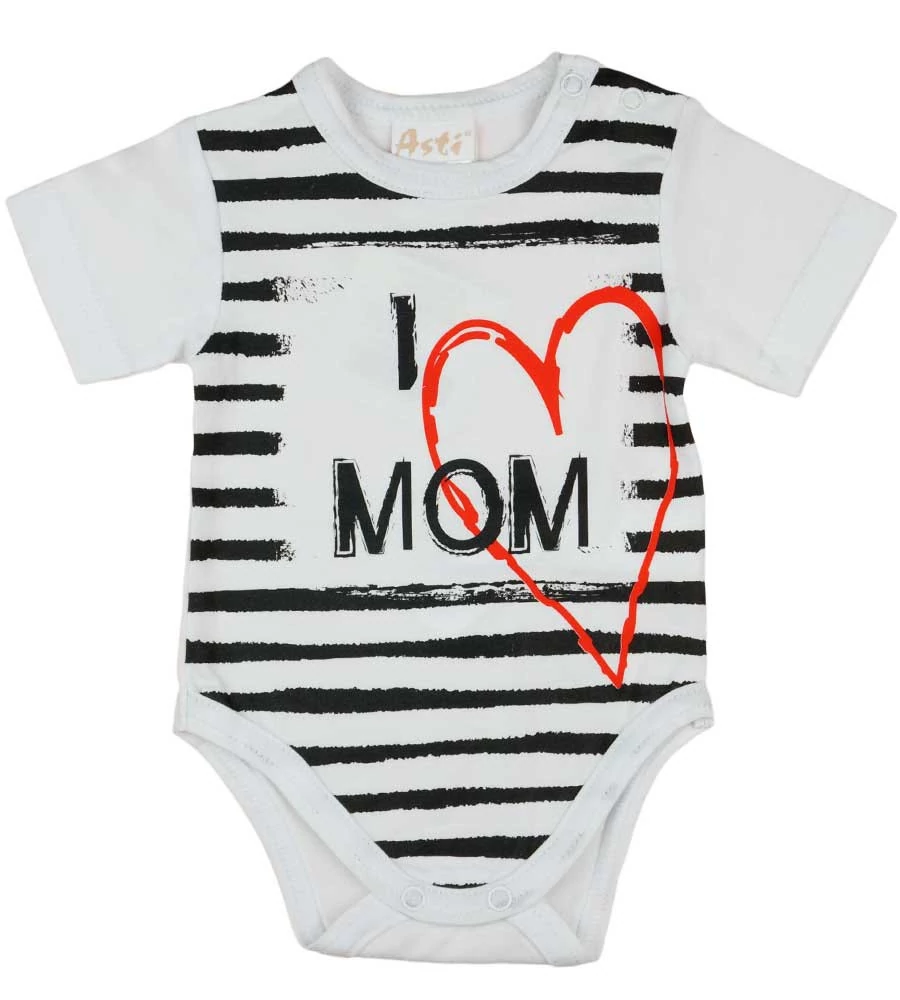 "I LOVE MY MOM" feliratos rövid ujjú baba body fehér