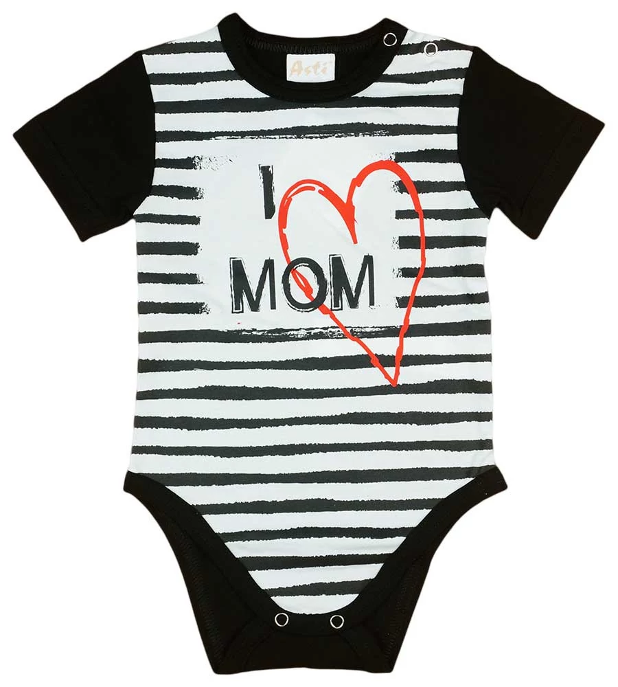 "I LOVE MY MOM" feliratos rövid ujjú baba body fekete