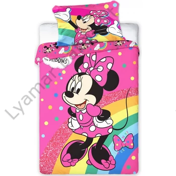 | Minnie egeres ovis ágynemű. Az ovis ágyneműhuzat 100% pamutból, tartós, színtartó nyomással készült, gépi mosással, 40 fokon mosható, mérete 100x135 és 40x60 cm. | |