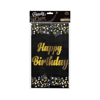 Fekete Happy Birthday B&C Black fólia asztalterítő 137x183 cm