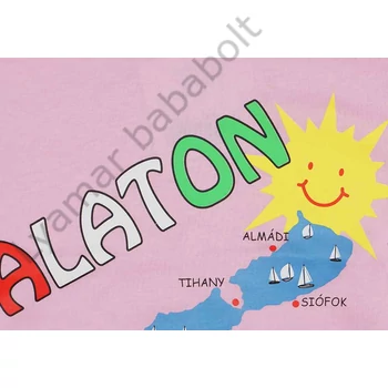 Elvarázsolja csemetéjét ez a rövid ujjú póló, amely a "Balaton" felirattal büszkélkedik. Legyen a kicsi a tópart legstílusosabb lakója ebben a játékos darabban. A rózsaszín színű unisex póló nem csak a szemnek gyönyörködtető, de a 100% pamut anyaga rendkívül kényelmes viseletet biztosít a baba bőrének. A hazai manufaktúra büszkesége ez a magyar termék, amely a Balaton szeretetét hivatott továbbadni a legkisebbeknek is. Fontos megjegyezni, hogy a termékeknél megadott életkor csupán irányadó, így minden esetben érdemes a méreteket is figyelembe venni a tökéletes illeszkedés érdekében.