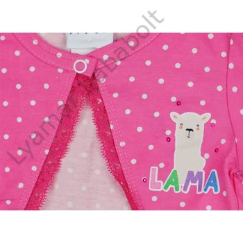 Bájos láma mintás, pink színű boleróval varázsolja el kislányát! Ez a kiváló minőségű, 100% pamutból készült ruhadarab egészen biztosan az idei szezon egyik kedvence lesz. A boleró elől patentos, így könnyen fel- és levenhető, míg a flitterekkel díszített láma minta garantáltan mosolyt csal majd a kicsi arcára. Magyarországon gyártott termékről van szó, így vásárlásával hazai munkahelyeket támogat. Ne hagyja ki ezt a különleges darabot, mely minden kislány gardróbja számára nélkülözhetetlen!