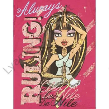 A Monster High nagylányos gyerek póló garantáltan nagy örömet szerez kislányának! Ez a rövid ujjú, pink színű póló, ami eredeti Mattel termék, a lányok nagy kedvence. A póló anyaga 100% pamut, így garantált a kényelem és a puhaság, ami a játék közben különösen fontos. A póló nagy nyomással díszített Monster High mintával készült, ami minden kislány számára elengedhetetlen. Az I.osztályú minőség gondoskodik róla, hogy a póló hosszú ideig szép maradjon. Büszkék vagyunk rá, hogy ez a termék Magyarországon készült. Kérjük, vegye figyelembe, hogy a termékeknél megadott életkor csak irányadó.