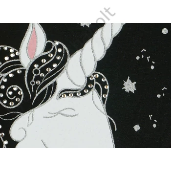 Varázslatos unikornis mintával díszített fekete lányka leggings, mely minden kislány álma! A leggings 3/4-es hosszúságú, tökéletes választás a melegebb hónapokra. A strasszokkal díszített unikornis minta hozzáad egy kis csillogást és varázslatot a mindennapi viselethez. Kiváló minőségű, 90% pamut és 10% elasztán anyagból készült, így biztosítja a kényelmet és a tartósságot. Az ajánlott életkor 18-24 hónap, de természetesen minden gyermek más, így ez csak irányadó. Magyarországon, az EU-ban készült, első osztályú minőségben. A kislányok imádni fogják ezt a leggings-t, mely tökéletes választás lehet mindennapokra, vagy akár különleges alkalmakra is!