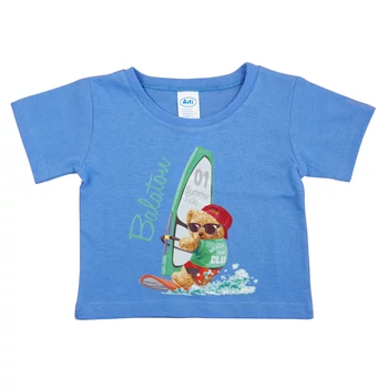Rövid ujjú Balatonos macis póló Ez a rövid ujjú póló tökéletes választás a kis strandolók számára. A puha, bőrbarát 100% pamut anyag gondoskodik arról, hogy gyermekünk mindig kényelmesen és szabadon mozogjon. A póló kék színe igazán friss és tiszta látványt nyújt, míg a Balatonos szörför maci mintája mindenkit elvarázsol. Klasszikus szabása pedig garantálja, hogy soha nem megy ki a divatból. Ráadásul könnyen kezelhető és jól mosható, így színét és formáját hosszú távon is megőrzi. Büszkén mondhatjuk, hogy ez a minőségi termék hazánkban készült, és az I. osztályú minőséget képviseli. Adjunk a kicsiknek egy kis Balaton-varázslatot minden nap!
