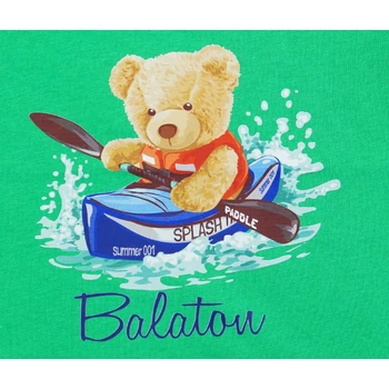 Rövid ujjú Balatonos macis póló Ez a rövid ujjú póló tökéletes választás a kis strandolók számára. A puha, bőrbarát 100% pamut anyag gondoskodik arról, hogy gyermekünk mindig kényelmesen és szabadon mozogjon. A póló zöld színe igazán friss és tiszta látványt nyújt, míg a Balatonos kajakos maci mintája mindenkit elvarázsol. Klasszikus szabása pedig garantálja, hogy soha nem megy ki a divatból. Ráadásul könnyen kezelhető és jól mosható, így színét és formáját hosszú távon is megőrzi. Büszkén mondhatjuk, hogy ez a minőségi termék hazánkban készült, és az I. osztályú minőséget képviseli. Adjunk a kicsiknek egy kis Balaton-varázslatot minden nap!