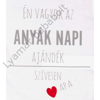 Rövid ujjú Anyák napi baba body Egy igazán aranyos választás a Anyák napjára. Képzelj el kisbabáját ebben a fehér, rövid ujjú baba bodyban, melyen "Én vagyok az Anyák napi ajándék szívesen apa" felirat olvasható. Kiváló minőségű, magyar termék, amelyben garantáltan jól érzi magát a kicsi. A vállán található patentos kialakítás miatt könnyedén fel- és leöltöztethető, ami a mindennapokban nagy segítség. Az anyaga 100% pamut, így kényelmes és bőrbarát viselet a babáknak. A termék nikkelmentes patenttal készül, így az arra érzékeny babák is nyugodtan viselhetik, nem vált ki allergiás reakciót. Egy igazán különleges és szívhez szóló ajándék lehet a legkisebbeknek Anyák napján. Minőségi magyar termék Anyaga: 100% pamut Minőség: I. osztály