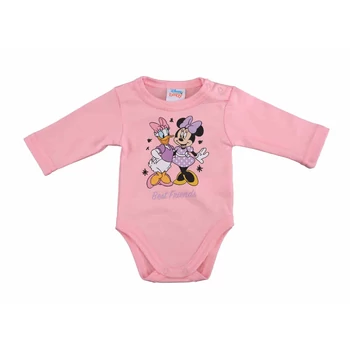 A Disney Minnie mintával nyomott hosszú ujjú baba body a kisbabák ruhatárának praktikus, nélkülözhetetlen kelléke. A rózsaszín darabot egy aranyos Minnie minta díszíti, ami garantáltan elvarázsol minden kis Disney rajongót. A 100% pamutból készült body nem csak kényelmes és puha viseletet biztosít, de szín- és formatartó anyagának köszönhetően a gyakori mosást is jól bírja. A vállán található patentos megoldás megkönnyíti a baba öltöztetését, míg a lába közötti patent a gyors peluscserét teszi lehetővé. Az eredeti Disney termék minőségi magyar termék, az I. osztályú kivitel pedig hosszú távú használatot garantál. A termékben található patent nikkelmentes, így az arra érzékeny babák számára is biztonságos választás. Csempéssze a Disney varázslatát babája mindennapjaiba ezzel a különleges bodyval!