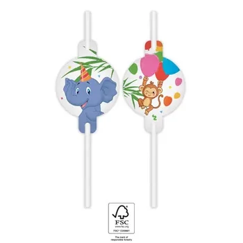 Dzsungel Balloons papír szívószál, 4 db-os szett FSC