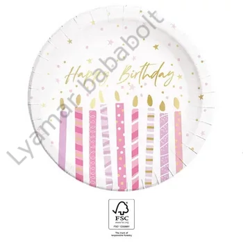 Happy Birthday Candles papírtányér 8 db-os 23 cm FSC