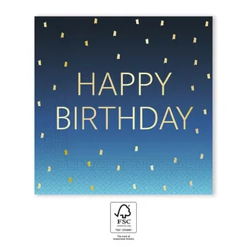 Happy Birthday Golden Blue szalvéta 20 db-os 33x33 cm FSC