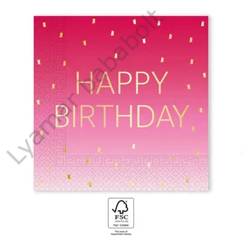 Happy Birthday Golden Pink szalvéta 20 db-os 33x33 cm FSC