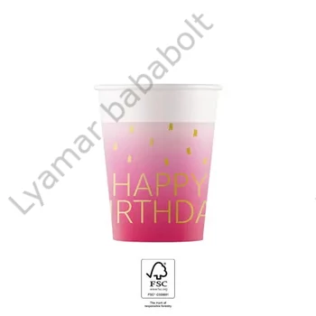 Happy Birthday Golden Pink papír pohár 8 db-os 200 ml FSC