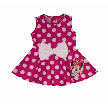 Pöttyös, pörgős kislány nyári ruha fehér masnival, Minnie egérrel