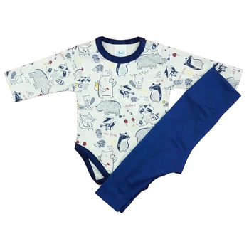 2 részes kisfiú szett mosómedvés mintával A kisfiúk divatjának legújabb trendjét képviseli ez a 2 részes szett, amelynek minden darabja Magyarországról származik. Az összeállításban található hosszú ujjú body és kényelmes baba nadrág igazán vagány és kispasis hangulatot kölcsönöz viselőjének. Mindkét darab finom pamut anyagból készült, a nadrág rugalmas pamutja pedig szabad mozgást biztosít a babának. A szett kiváló minőségű, jól mosható, szín- és formatartó anyaga miatt nemcsak a babák, de az anyukák kedvence is lesz! A body 100% pamutból, a nadrág 90% pamutból és 10% elasztánból készült, ezáltal biztosítva a kiváló minőséget. A termék nikkelmentes patenttal készül, így az érzékeny babák sem fognak allergiás reakciót tapasztalni. Minőségi magyar termék Minőség: I. osztály